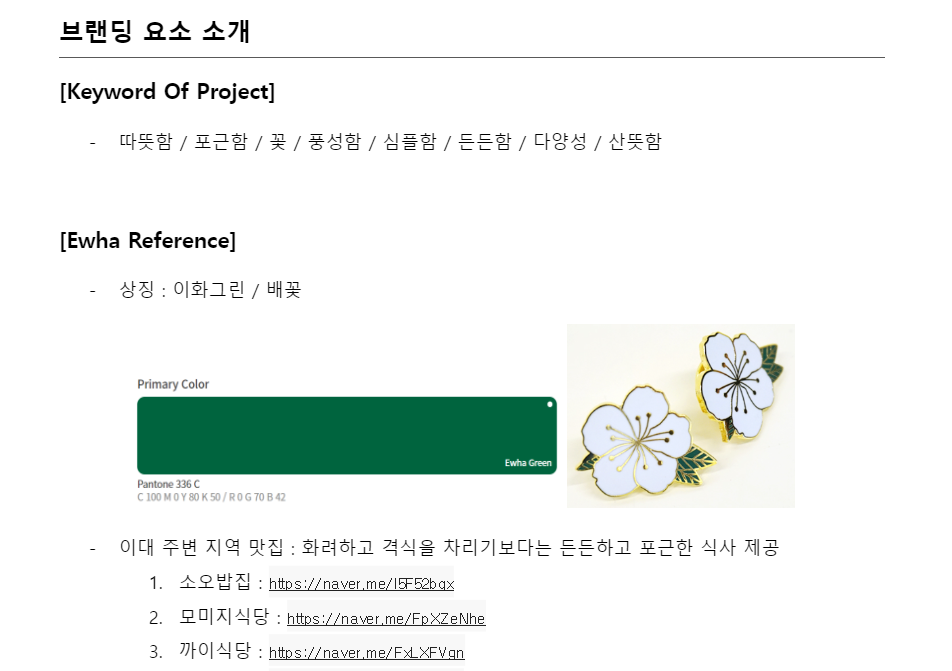 웹사이트 내의 모든 기술적인 설계를 마치고 난 후, 웹사이트의 디자인과 맛집 커뮤니티 브랜딩을 위해 관련 조사 및 보고서 작성을 진행하였다. 제작하려는 웹페이지와 비슷한 기능을 가진 사이트의 특징을 분석하고 Ettopia 제작 시 필수로 들어가야 하는 기능을 확정하여 요구사항 정의서를 최종 수정한 후, 제작하려는 웹사이트의 전반적인 목표와 다른 팀과의 차별점을 작성하였다. 다음은 작성한 브랜딩 기획서 및 보고서의 일부이다.